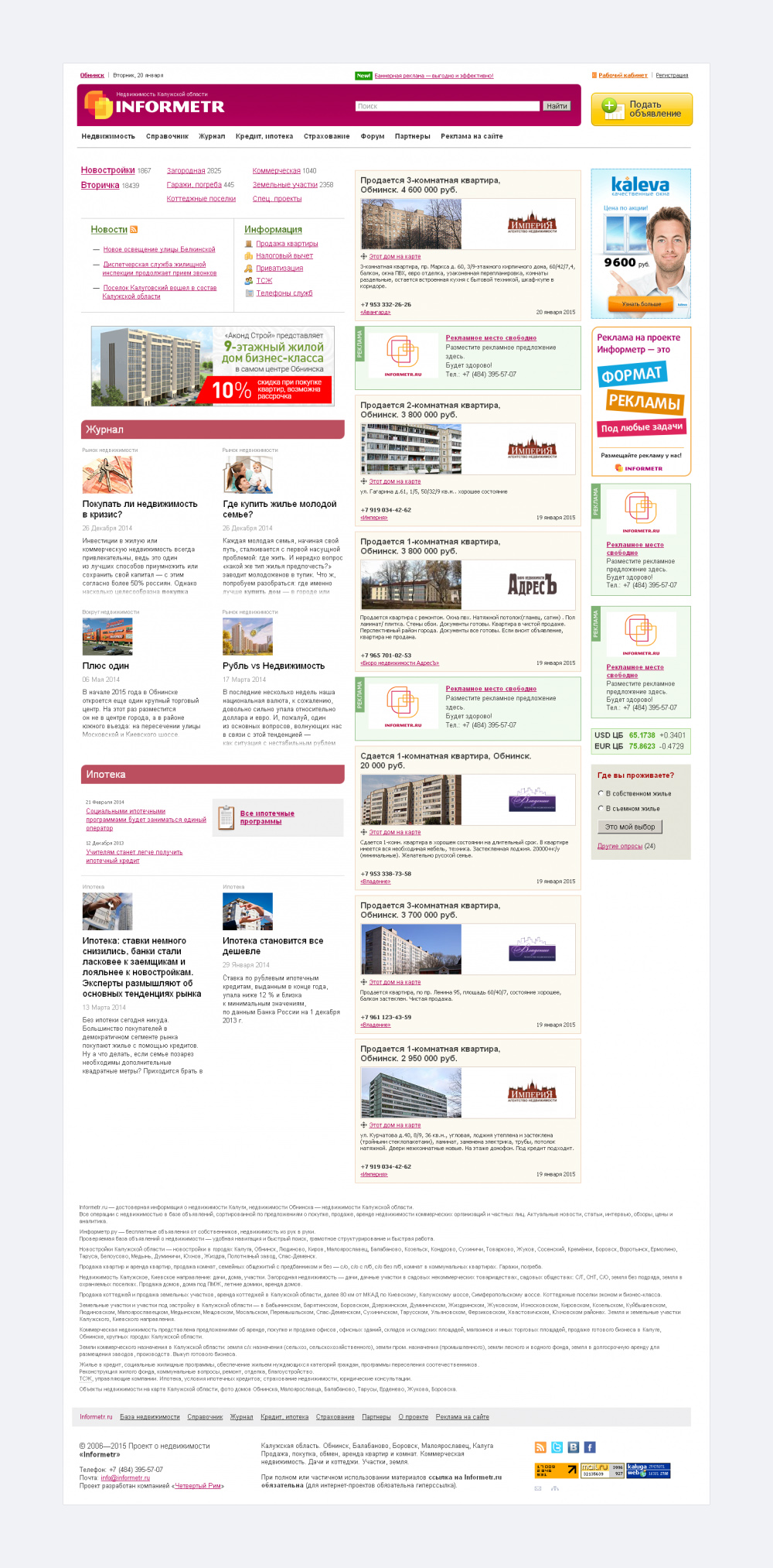 Сейчас Информетр — это ведущий региональный портал, на котором представлены все виды операций и объявлений о недвижимости, отсортированных по предложениям о покупке, продаже, аренде от коммерческих организаций и частных лиц; актуальные новости, статьи, интервью, обзоры, цены и аналитика, модерируемая база объявлений, удобная навигация и быстрый поиск, грамотное структурирование и быстрая работа.