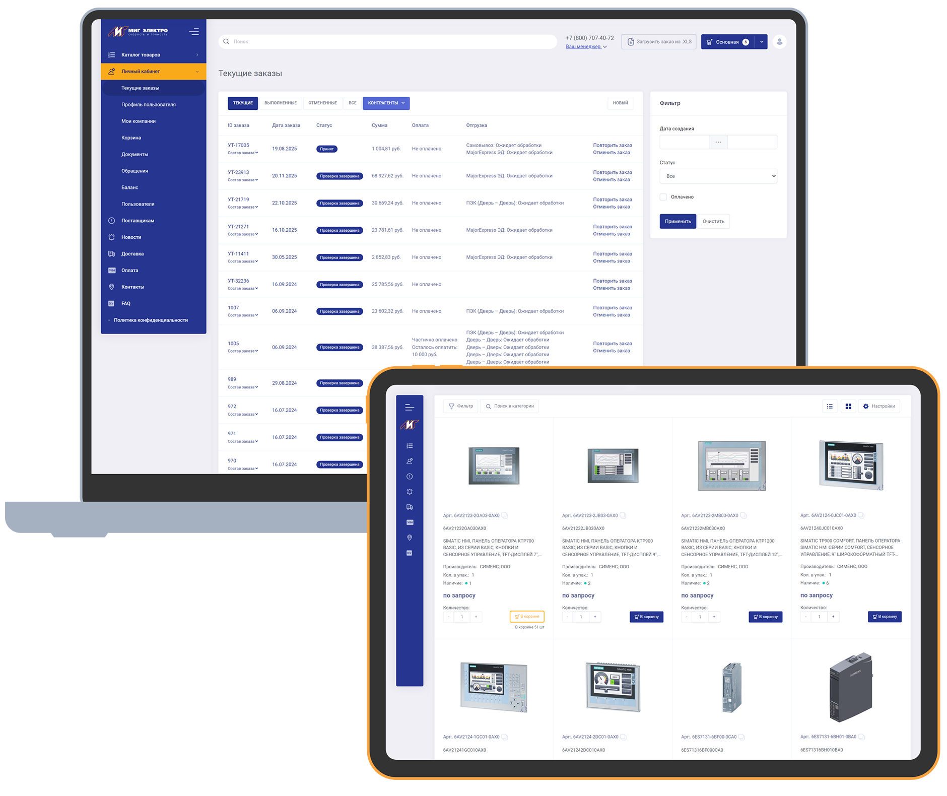 МИГ Электро пришли в «Четвёртый Рим» когда стало понятно, что старая система больше не выдерживает нагрузку. Нужен удобный личный кабинет, который разгрузит менеджеров и даст возможность клиентам понимать, что происходит с их заказом в реальном времени.